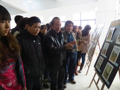 12月4日上午10时,我系在江北校区2号教学楼2楼大厅举办“洛南秋韵—2011级美术学专业水彩风景写生展”。系主任单福东、办学顾问党天才教授、副主任章长青、副主任雷升录、美术教师周平、廉宝瑞及200余名学生参加了画展开幕式。开幕式由雷升录主持,办学顾问党天才教授介绍了这次写生的基本情况,章长青对此次画展做了点评。